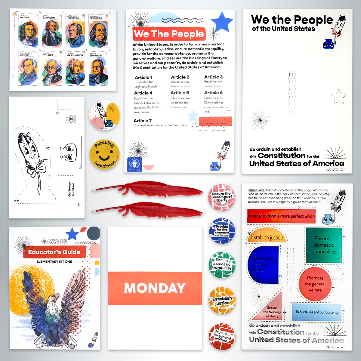The Constitution Kit is a five-day unit study designed for 3rd to 6th grade students, available for either five students (Homeschool Edition) or 30 students (Classroom Edition). Packed with lesson guides, engaging activities, and tokens, this kit encourages students to explore America's Founding and the Constitution in a fun, hands-on way. Perfect for bringing history to life, it helps foster enthusiasm for the foundational principles that shaped the United States.